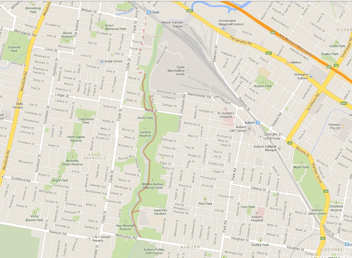 then follow a few back streets to Birrong Swimming Centre and onwards south on quiet streets, ending up at Dunc Grey Velodrome.